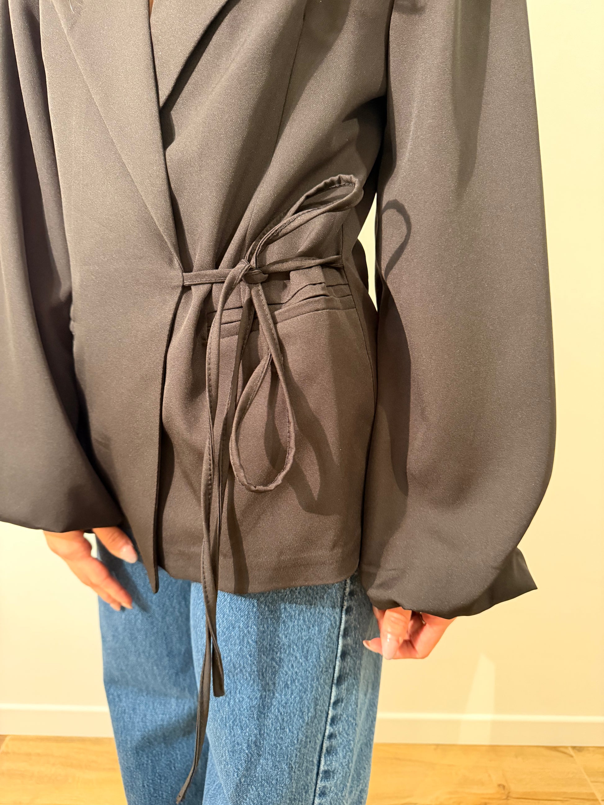 Blazer con spalle a sbuffo e manica larga, cintura regolabile in vita