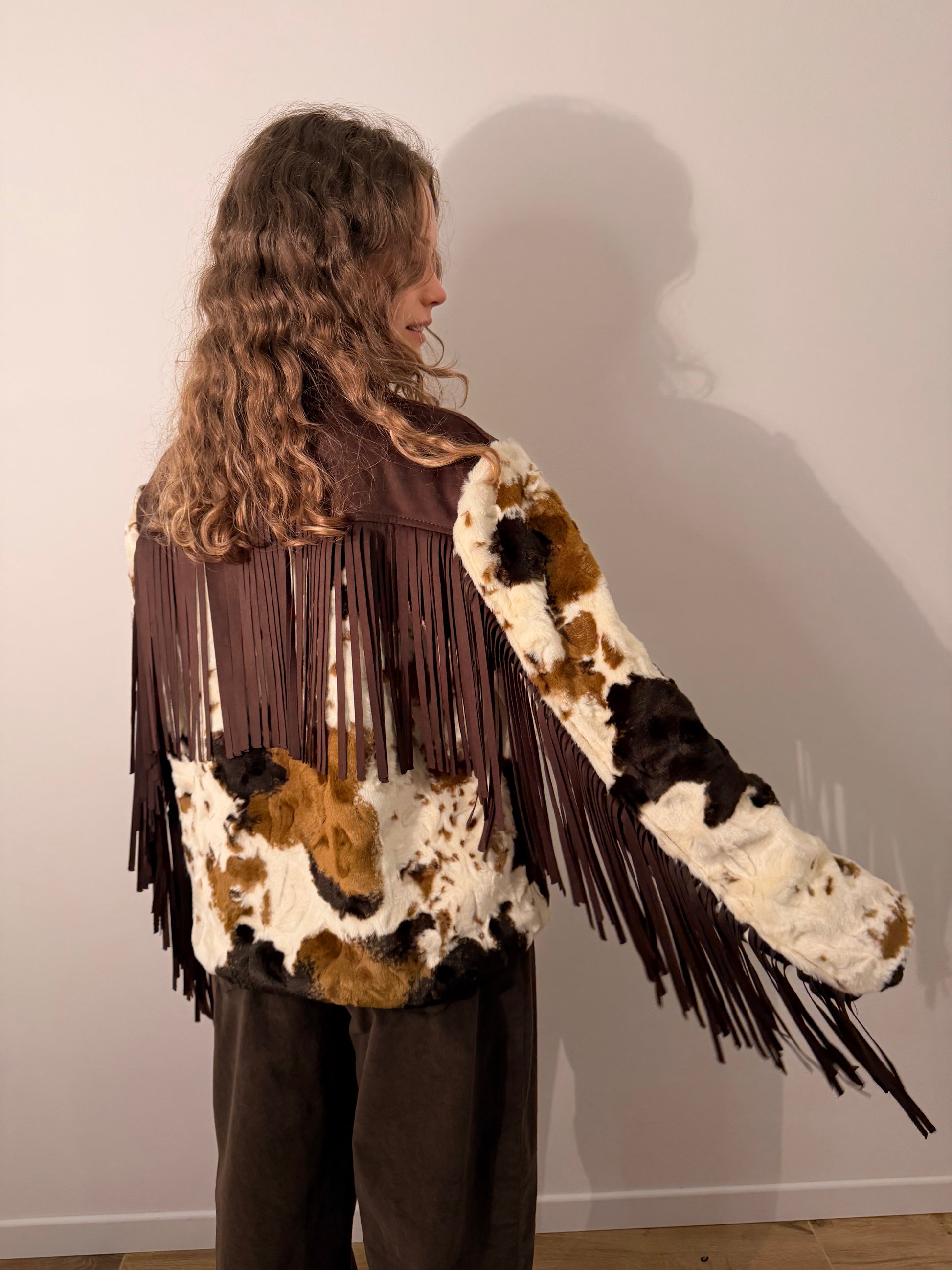 Giacca effetto mucca con frange